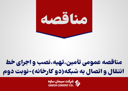 مناقصه عمومی عملیات طراحی، تامین، نصب ، راه اندازی و آموزش خطوط انتقال جداگانه کارخانه سیمان سفید و خاکستری به شبکه داخلی کارخانه از خروجی نیروگاه خورشیدی(نوبت دوم)سیمان ساوهاکتبر 14, 2025جهت شرکت در مناقصه عمومی عملیات طراحی، تامین، نصب ، راه اندازی و آموزش خطوط انتقال جداگانه کارخانه سیمان سفید ... ادامه مطلب