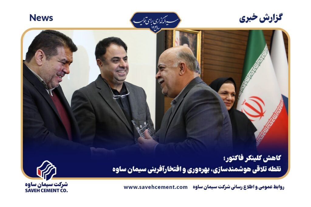 در این مراسم که در تاریخ ۲۶ آذرماه برگزار شد، کارخانه سیمان خاکستری ساوه بهدلیل ثبت شاخص مطلوب و پایین کلینکر فاکتور، بهعنوان یکی از واحدهای برتر مورد تقدیر قرار گرفت و مهندس مهدی فقیهی، مدیرعامل محترم شرکت سیمان ساوه، موفق به دریافت تندیس این همایش شد.